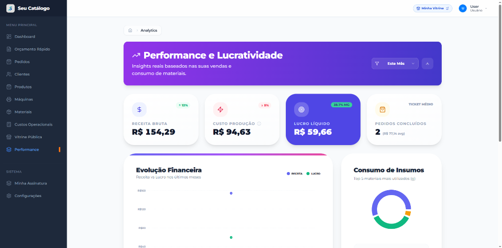 A ferramenta definitiva para makers profissionais organizarem modelos, calcularem lucros reais e gerenciarem clientes em um só lugar.